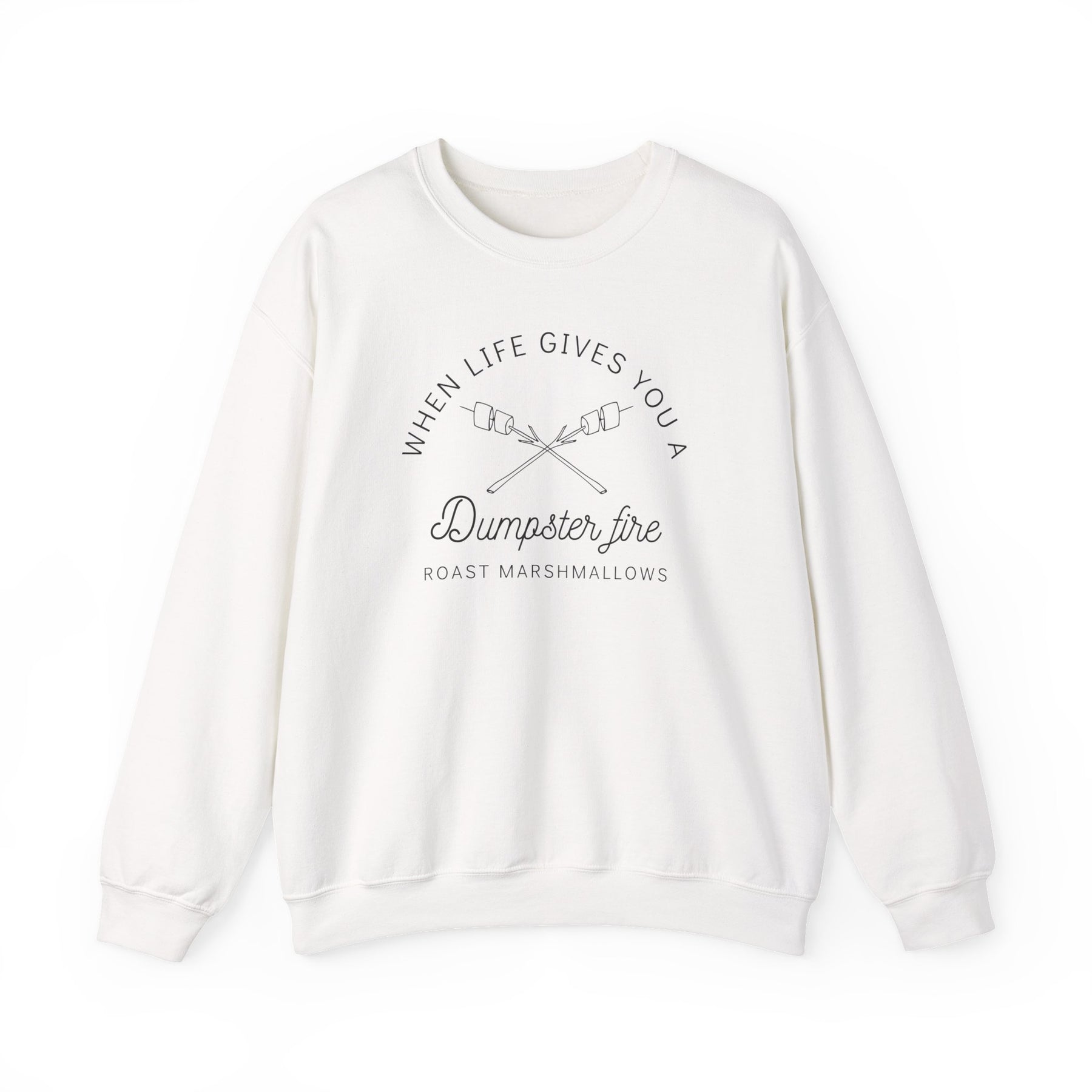 “When Life Gives You a Dumpster Fire, Roast Marshmallows” Unisex Heavy Blend™ Crewneck Sweatshirt