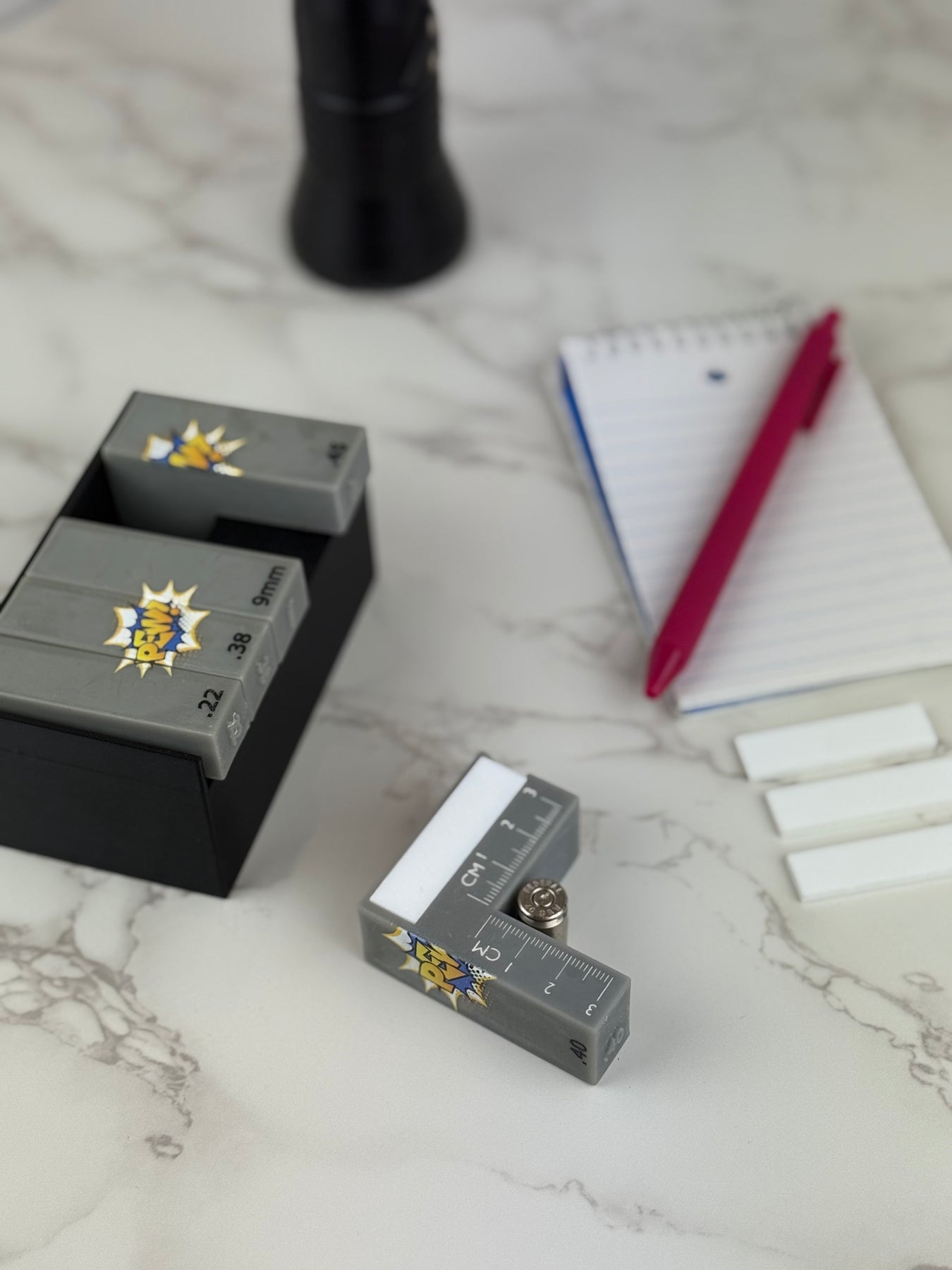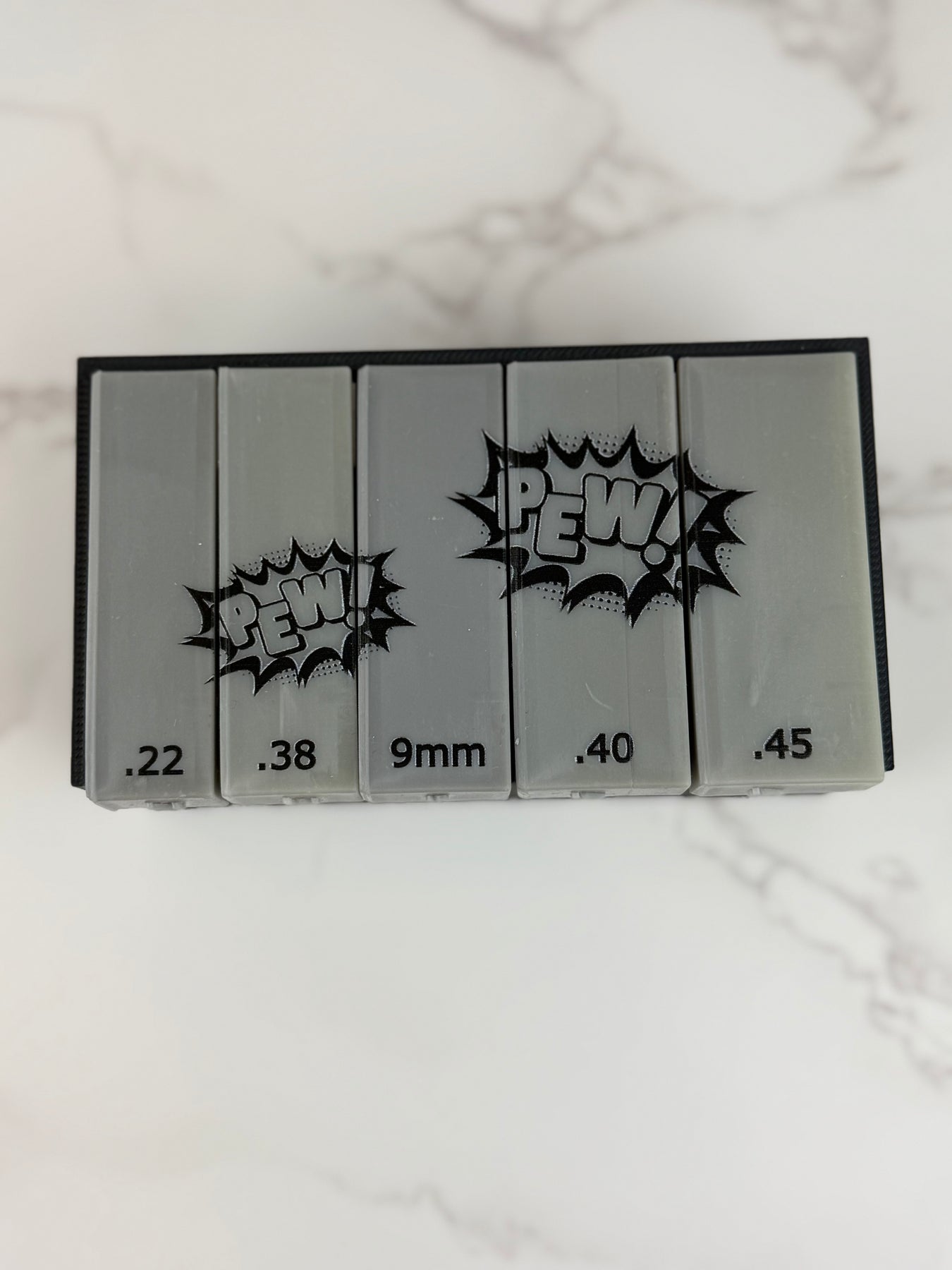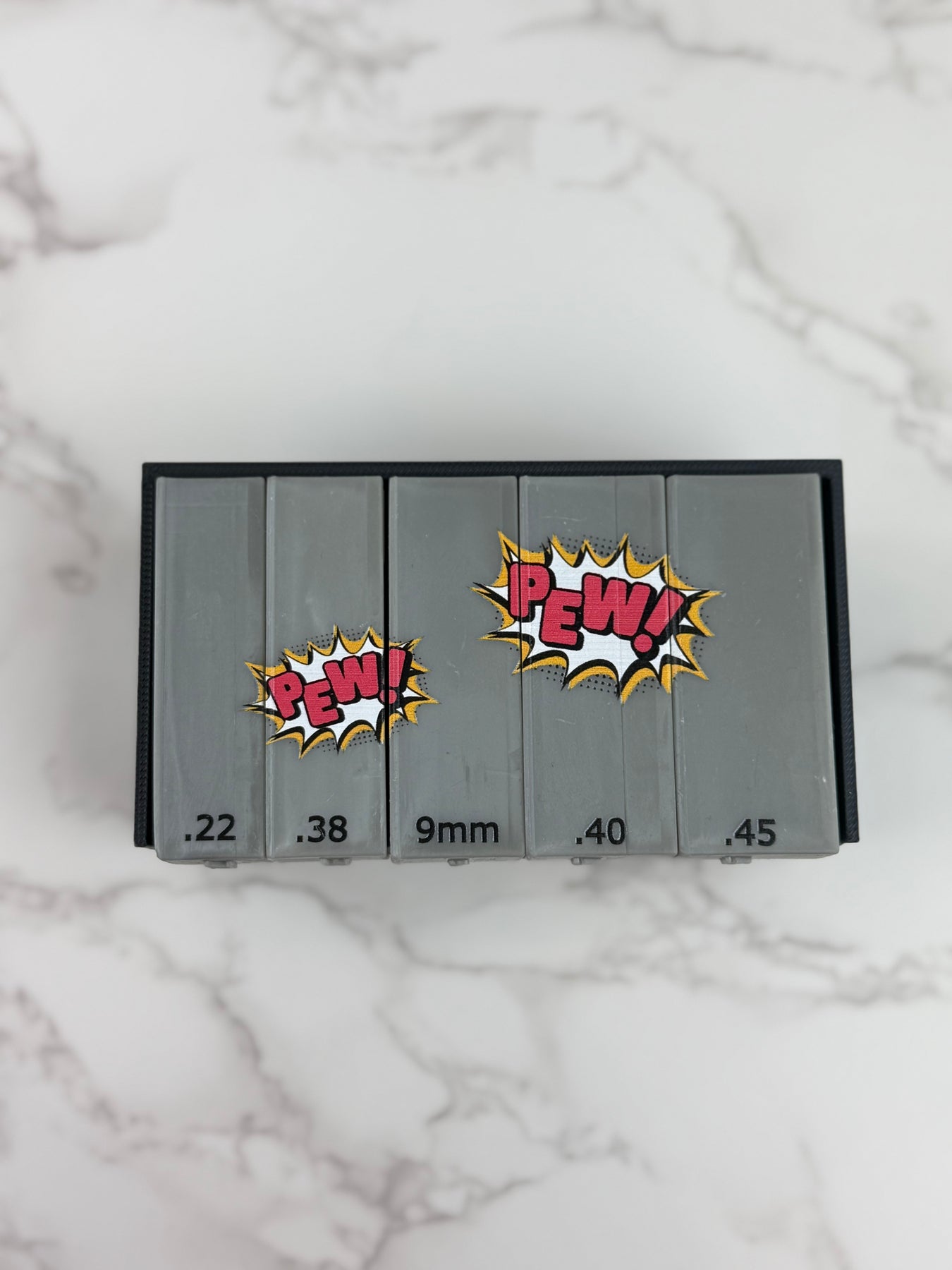 Crafted specifically for forensic professionals, this set makes documenting fired cartridge cases faster and easier. Plus, you can now get your scales in four unique styles to match your workflow or personal taste: plain grey, grey with black "pew pew" graphicgrey with blue & yellow "pew pew" graphic and grey with red & yellow "pew pew" graphic.