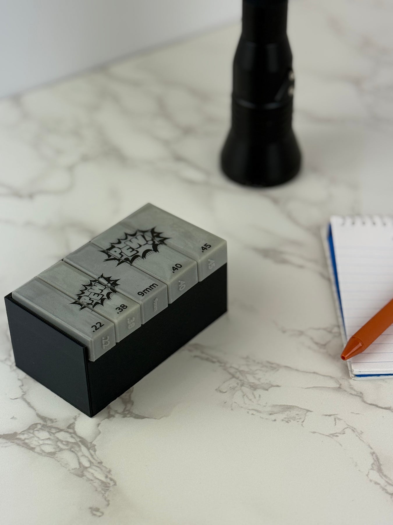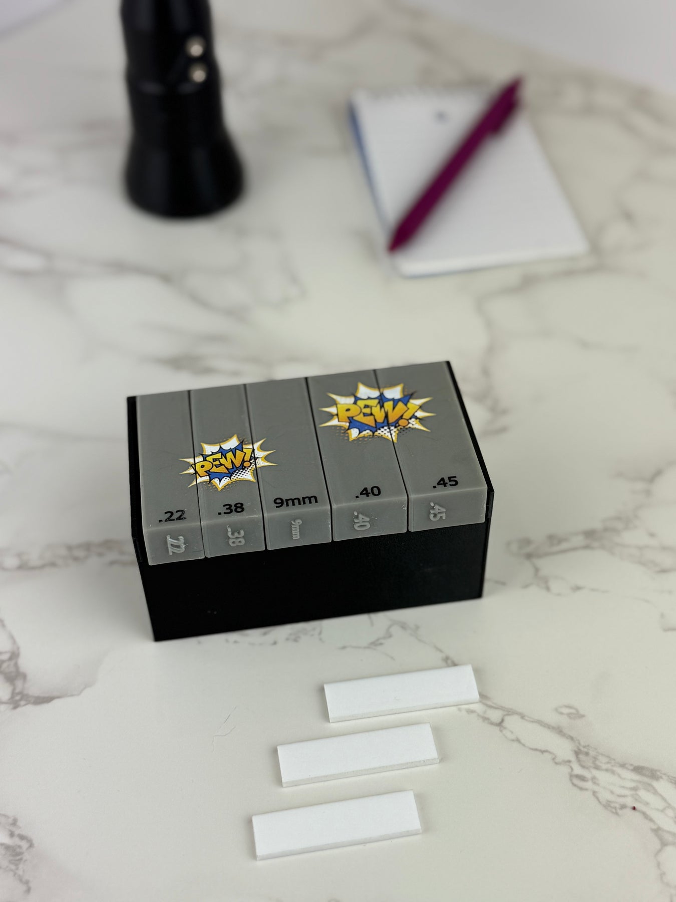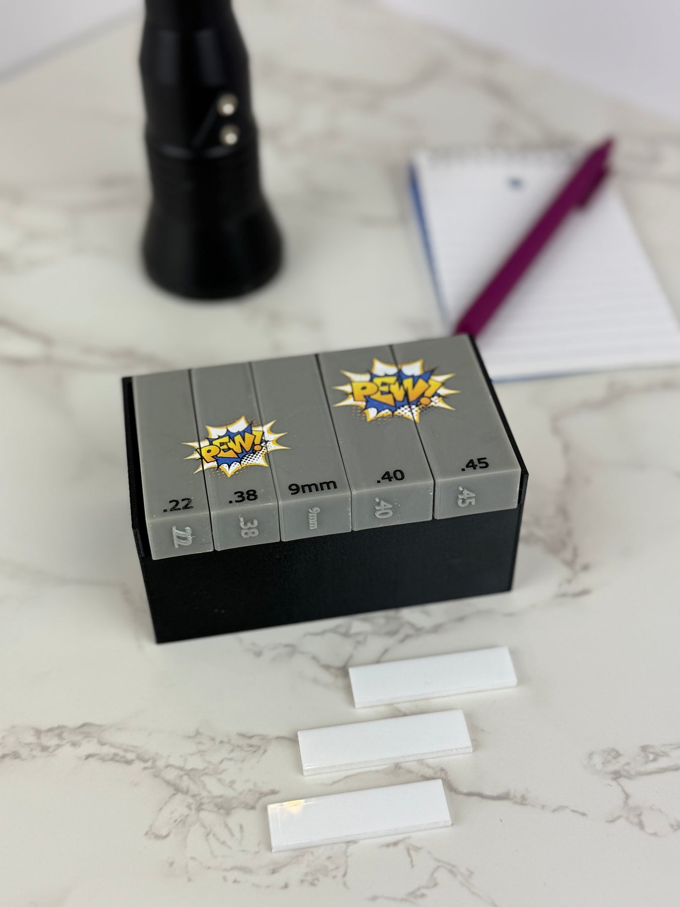 Crafted specifically for forensic professionals, this set makes documenting fired cartridge cases faster and easier. Plus, you can now get your scales in four unique styles to match your workflow or personal taste: plain grey, grey with black "pew pew" graphicgrey with blue & yellow "pew pew" graphic and grey with red & yellow "pew pew" graphic.