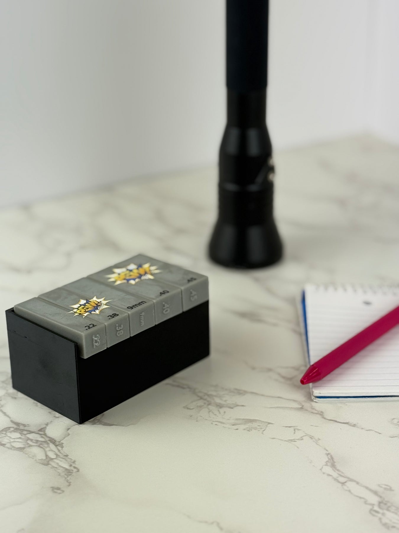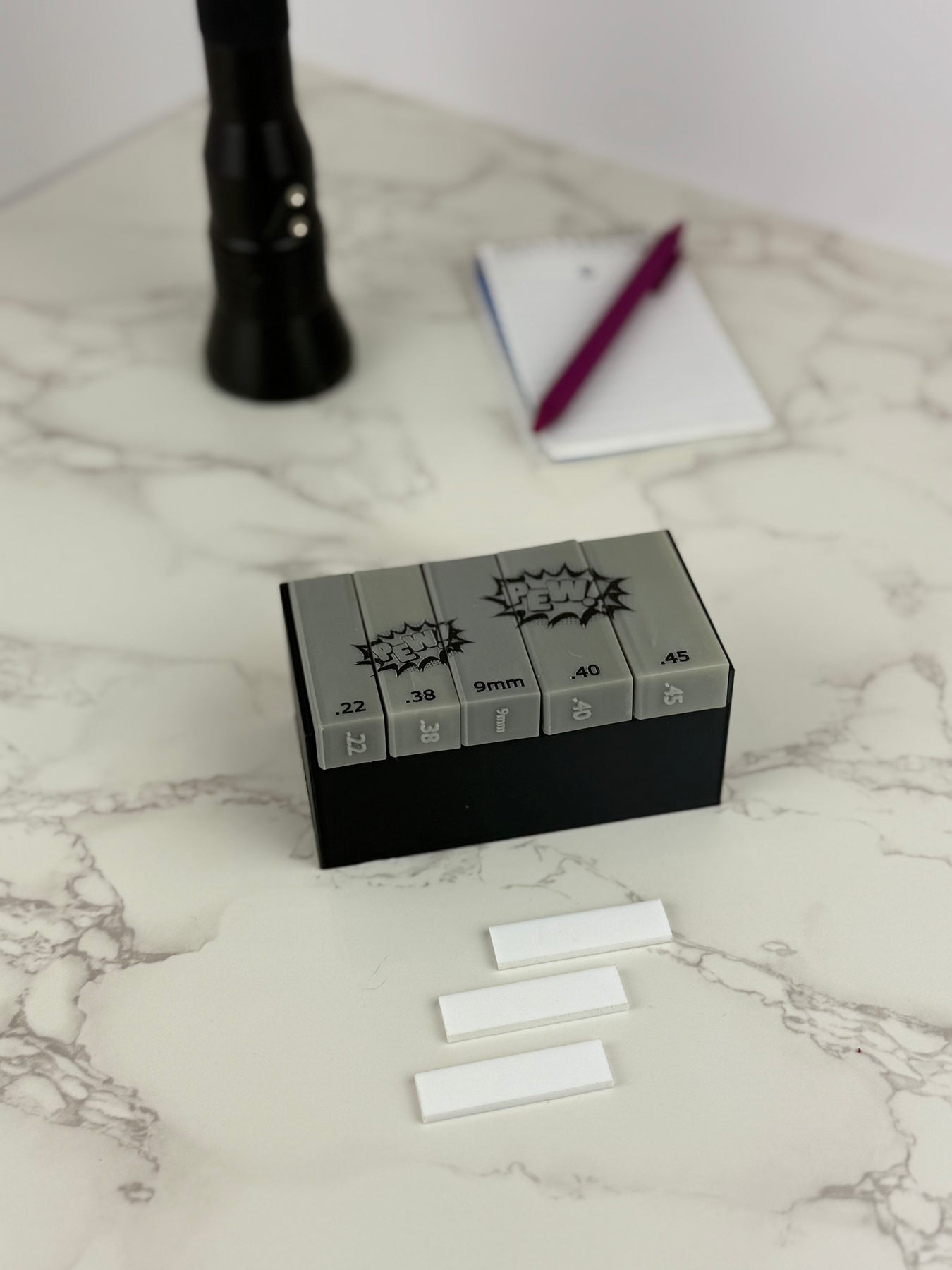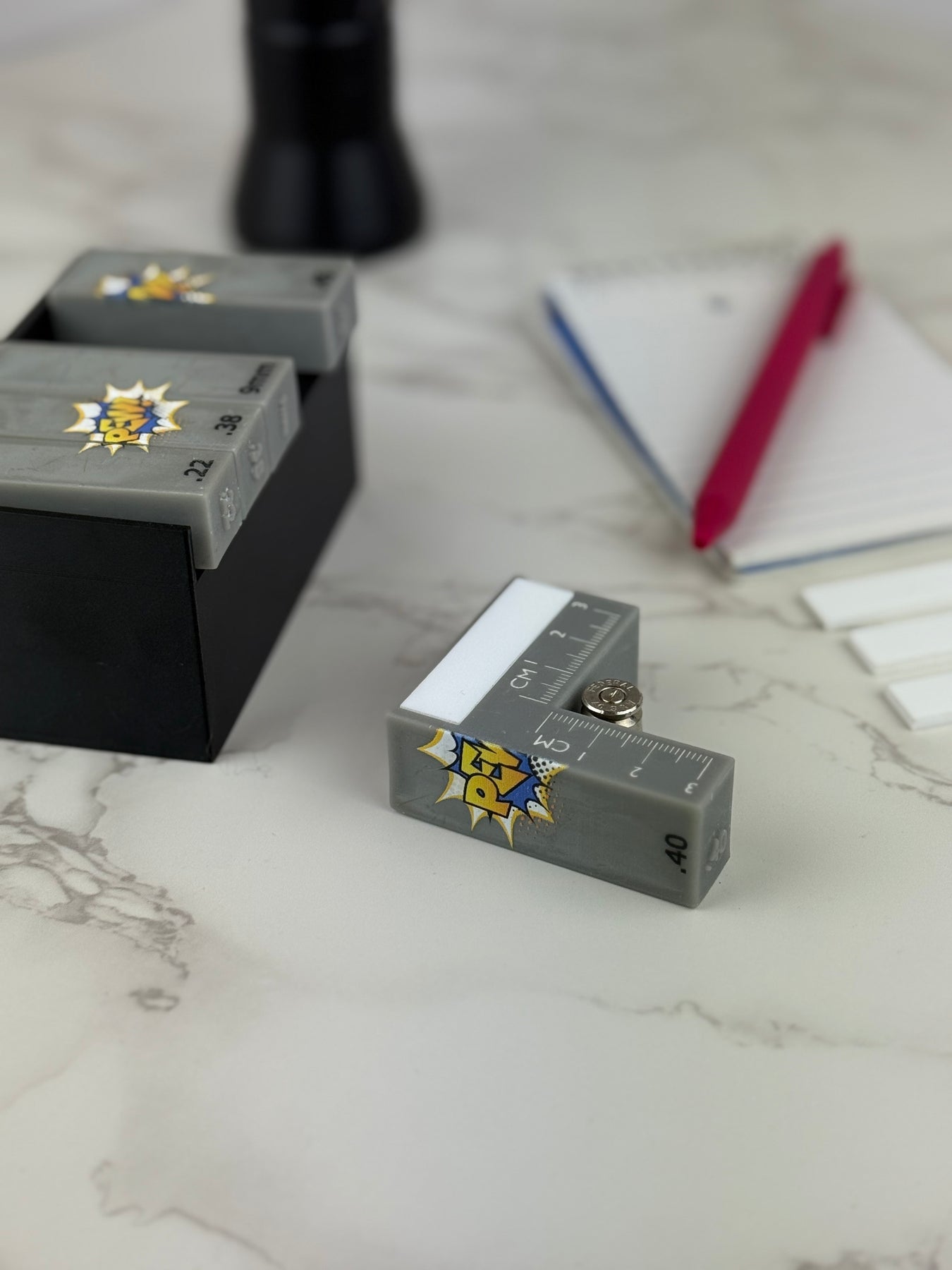 No more awkward setups or constant adjustments—just pick the right scale for your fired cartridge case and snap away! Each scale comes with a built-in metric ruler for precise measurements, raised caliber markings for quick selection, and 15 mini whiteboards so you can easily add case info to your photos. Streamline your evidence processing with this all-in-one tool that makes capturing perfect headstamp shots faster and easier than ever.